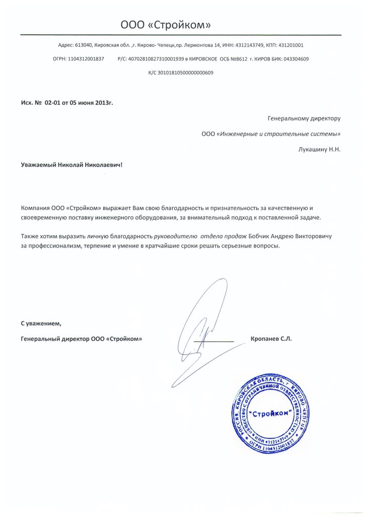 БЛАГОДАРСТВЕННЫЕ ПИСЬМА